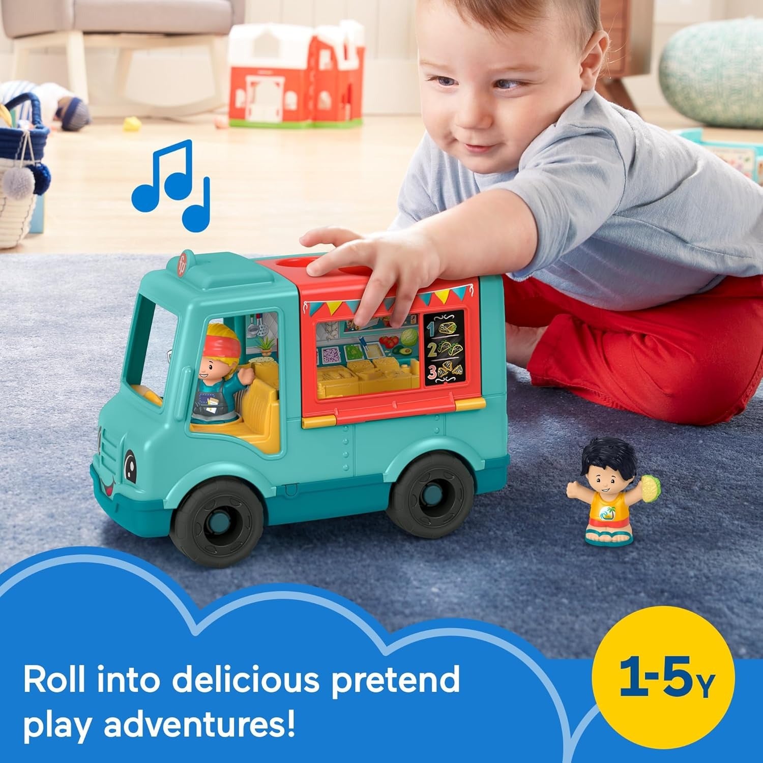 Fisher-Price Little People Musical Toddler Toy Serve It Up Food Truck Vehicle with 2 Figures for Pretend Play Kids Ages 1+ Years